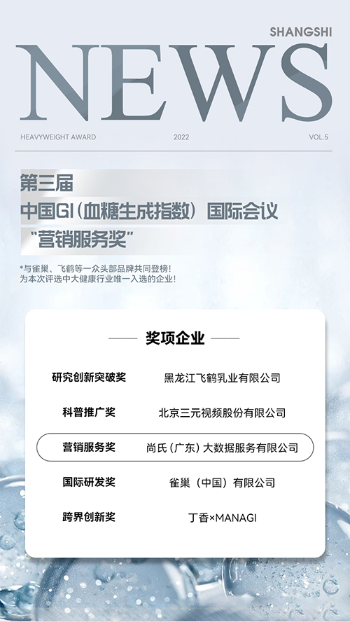 2021年四季度末端,尚氏再度揽取桂冠!11月8-10日,由中国食品发酵工业研究院携手热心肠研究院共同举办的“第三届中国GI(血糖生成指数)国际会议”奖项榜单揭晓。